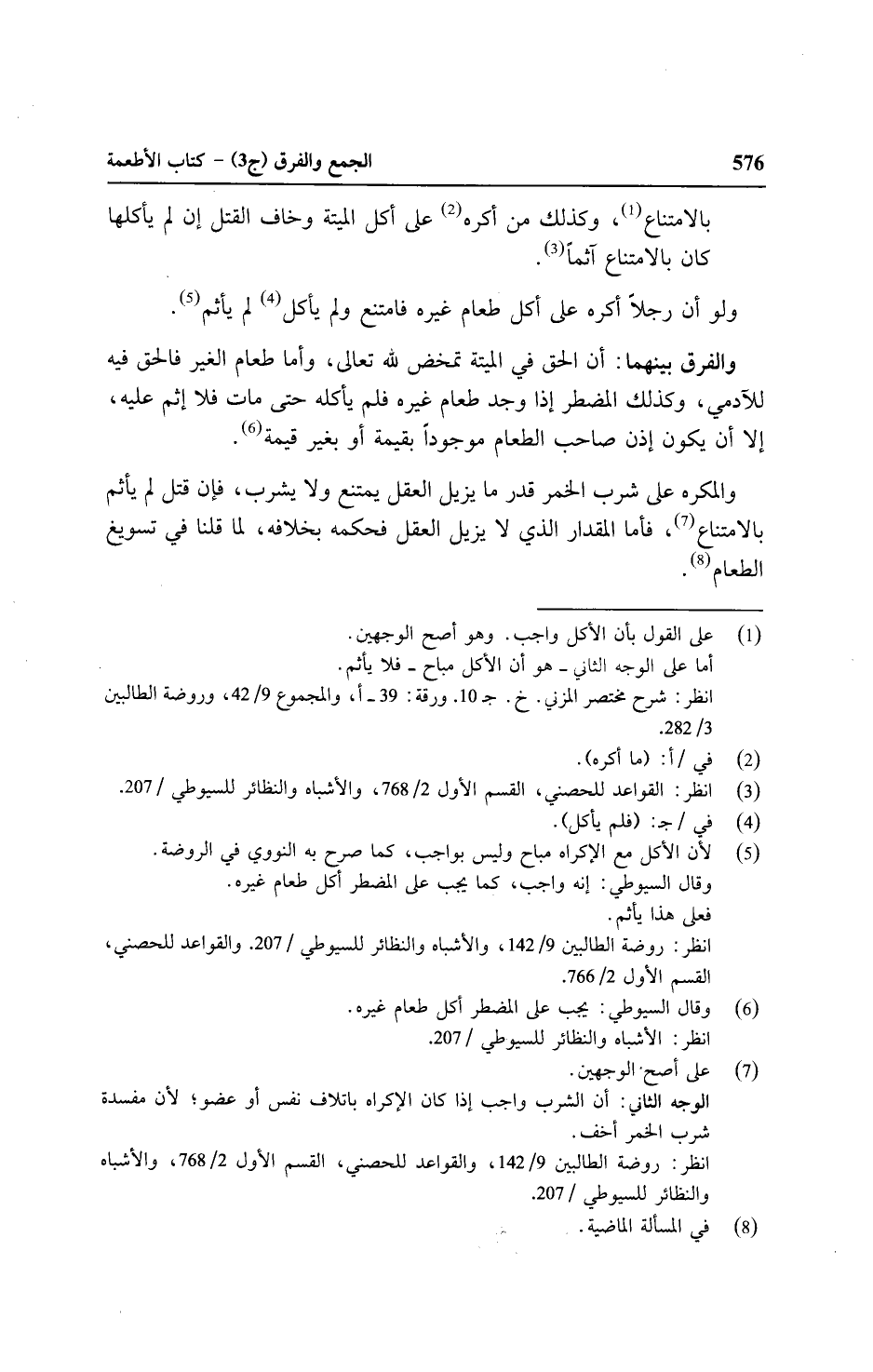 والفرق بينهما: أن الحق في الميتة تمخض لله تعالى، وأما طعام الغير فالحق فيه للآدمي، وكذلك المضطر إذا وجد طعام غيره فلم يأكله حتى مات فلا إثم عليه، إلا أن يكون إذن صاحب الطعام موجودًا بقيمة أو بغير قيمة.