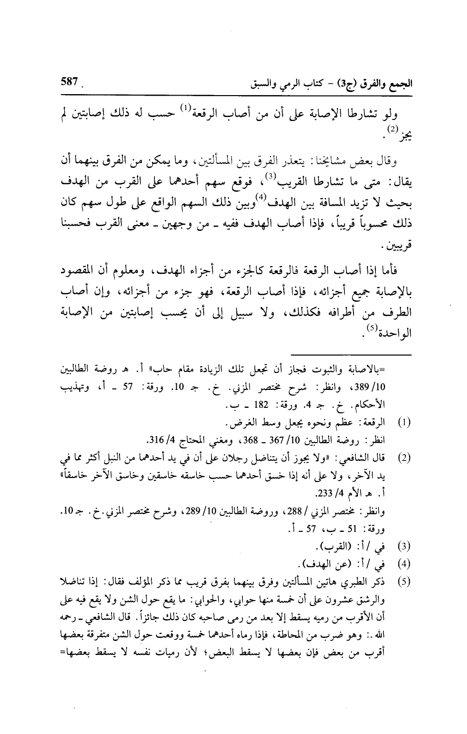 وقال بعض مشايخنا: يتعذر الفرق بين المسألتين، وما يمكن من الفرق بينهما أن يقال: متى ما تشارطا القريب، فوقع سهم أحدهما على القرب من الهدف بحيث لا تزيد المسافة بين الهدف وبين ذلك السهم الواقع على طول سهم كان ذلك محسوبًا قريبًا، فإذا أصاب الهدف ففيه - من وجهين - معنى القرب فحسبنا قريبين.