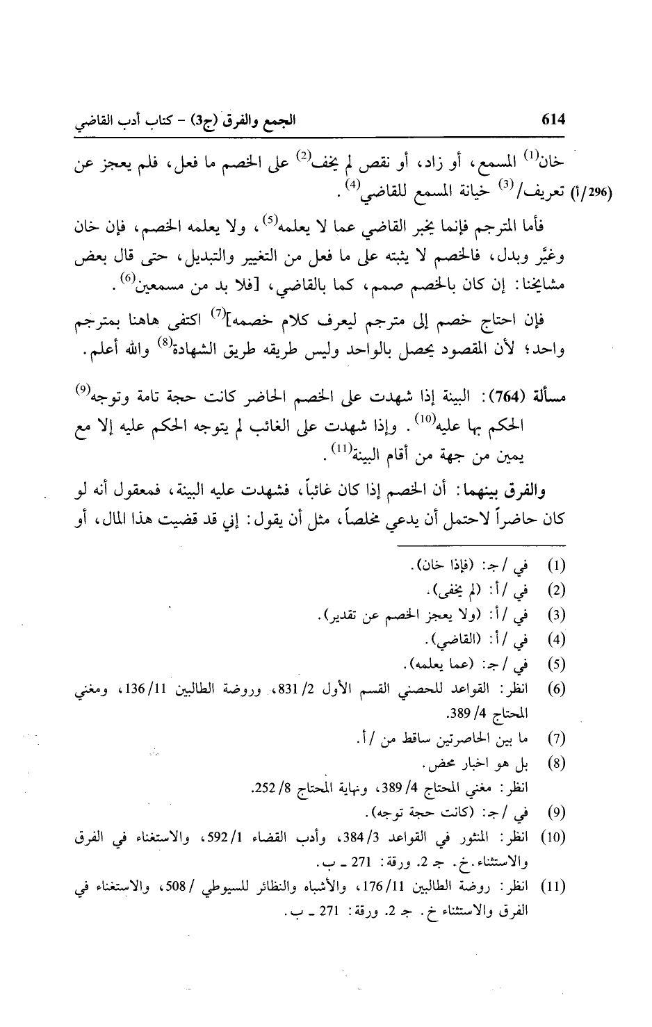 خان المسمع، أو زاد، أو نقص لم يخف على الخصم ما فعل، فلم يعجز عن تعريف/ (٢٩٦/ أ) خيانة المسمع للقاضي.