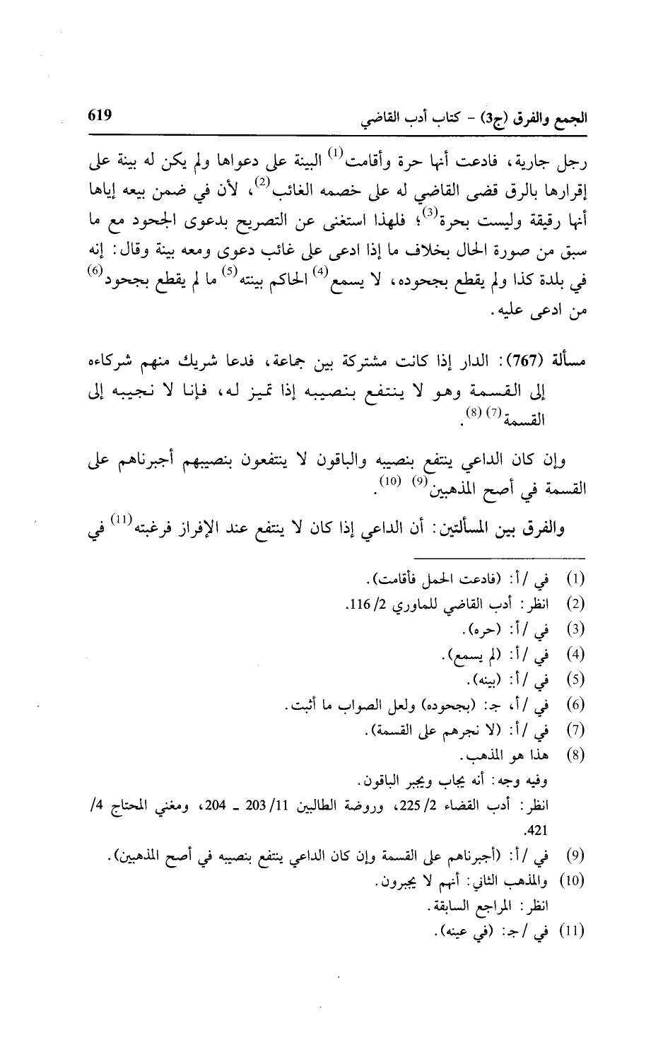 مسألة (٧٦٧): الدار إذا كانت مشتركة بين جماعة، فدعا شريك منهم شركاءه إلى القسم وهو لا ينتفع بنصيبه إذا تميز له، فإنا لا نجيبه إلى القسمة.