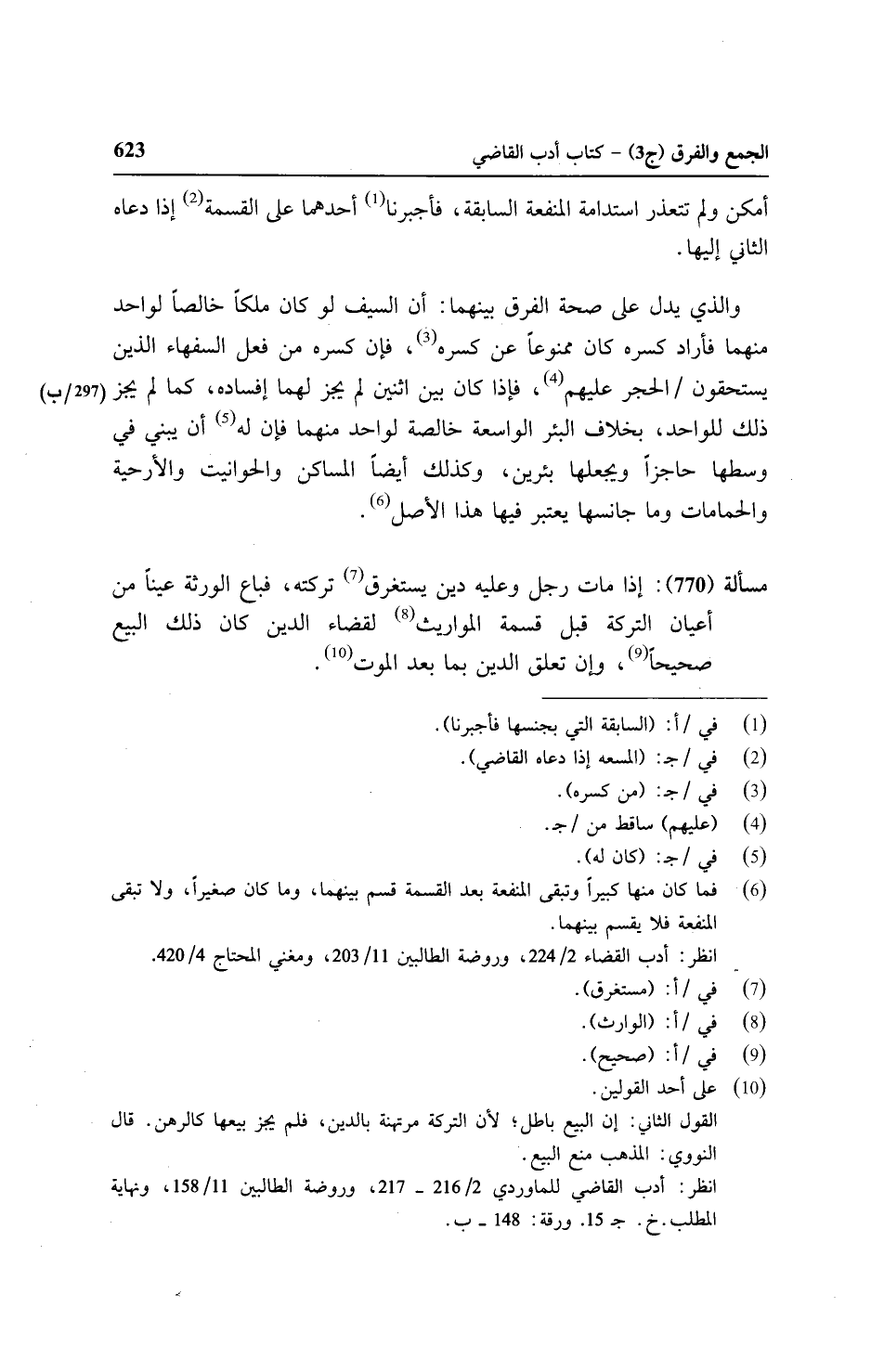 مسألة (٧٧٠): إذا مات رجل وعليه دين يستغرق تركته، فباع الورثة عينًا من أعيان التركة قبل قسمة المواريث لقضاء الدين كان ذلك البيع صحيحًا، وإن تعلق الدين بما بعد الموت.