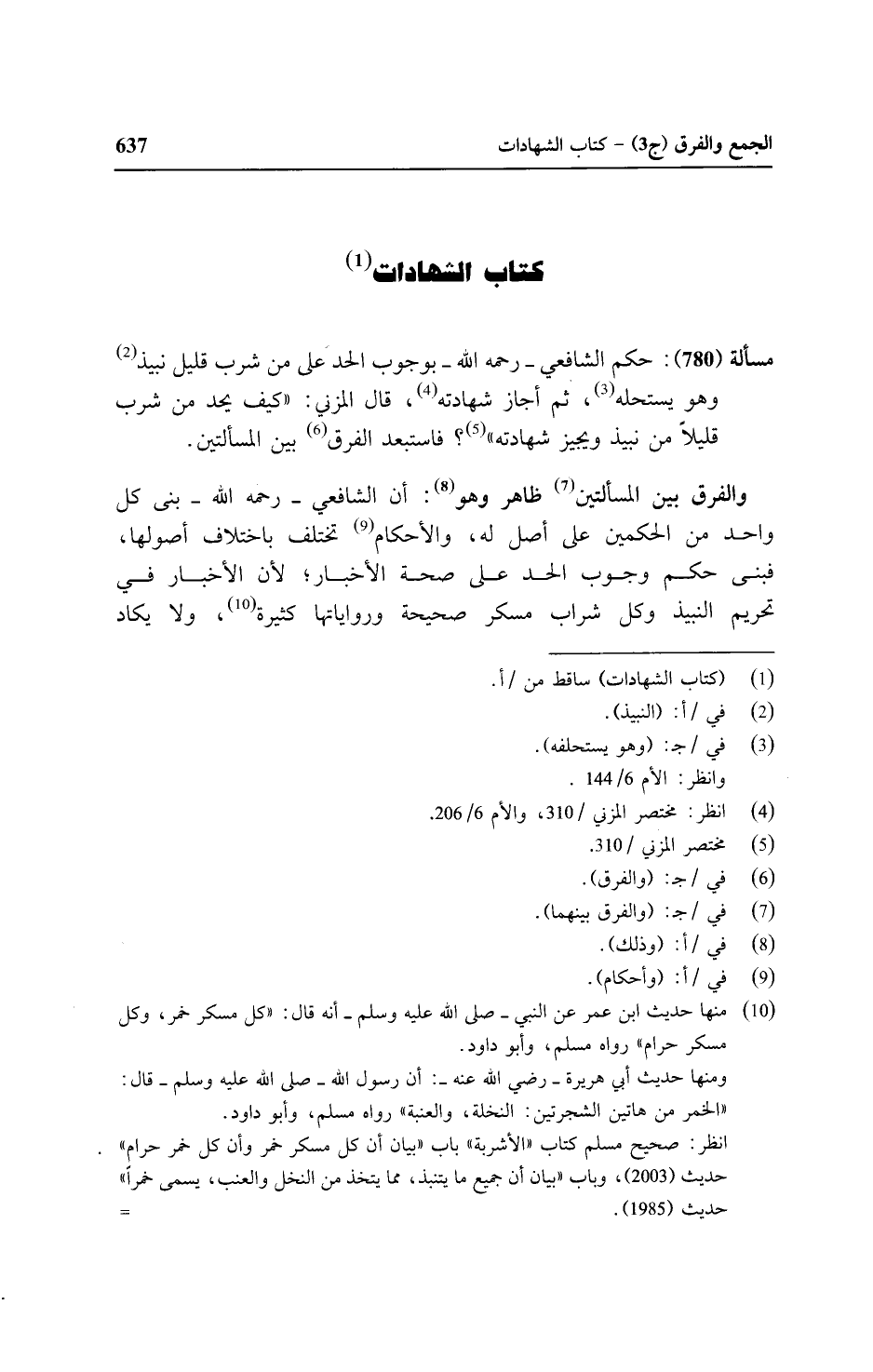 مسألة (٧٨٠): حكم الشافعي- رحمه الله- بوجوب الحد على من شرب قليل نبيذ وهو يستحله، ثم أجاز شهادته، قال المزني: "كيف يحد من شرب قليلاً من نبيذ ويجيز شهادته"؟ فاستبعد الفرق بين المسألتين.