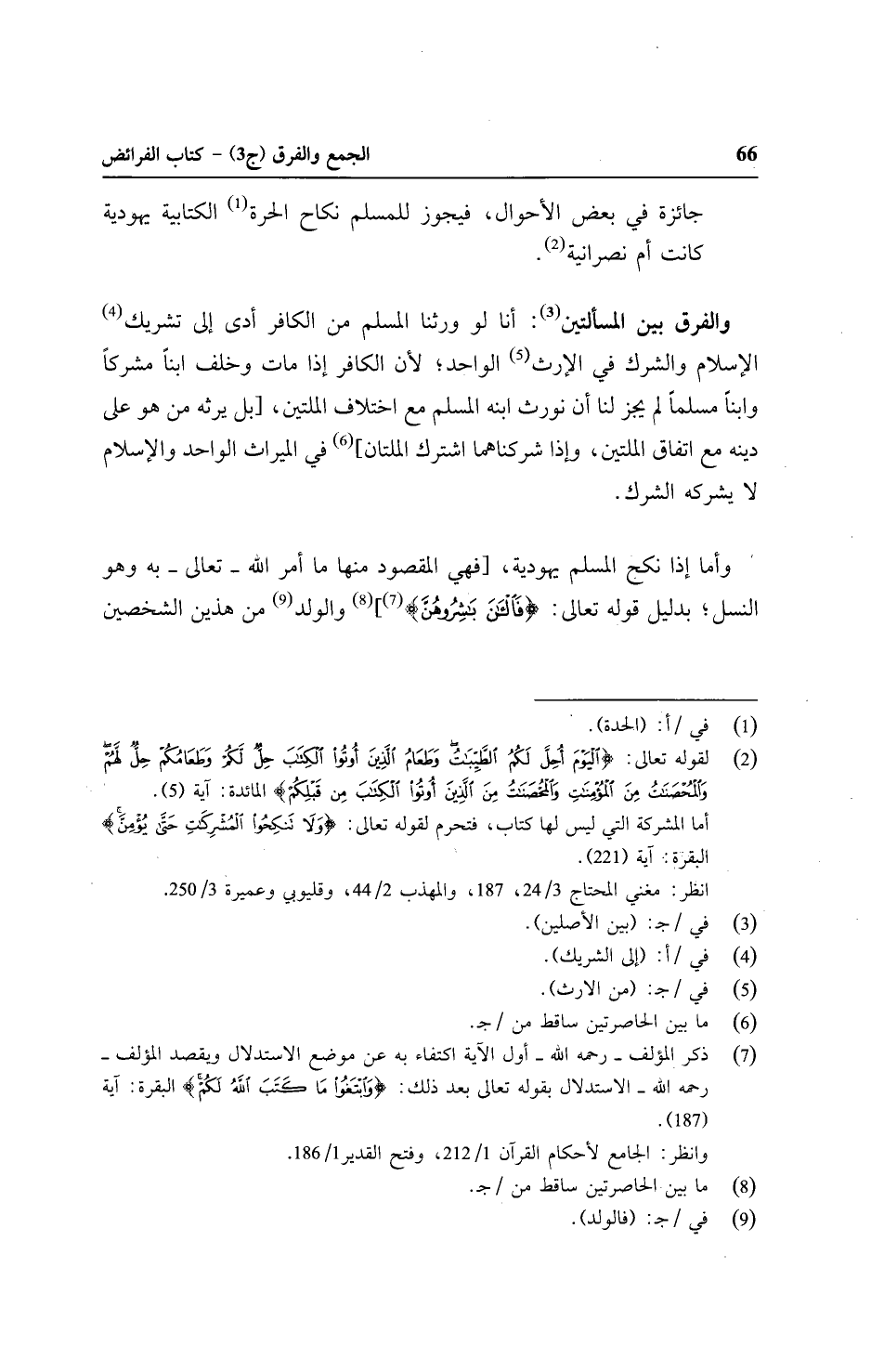 وأما إذا نكح المسلم يهودية,] فهي المقصود منها ما أمر الله - تعالى - به وهو النسل؛ بدليل قوله تعالى {فَالْئَنَ بَشِرُوهُنّ} والولد من هذين الشخصين