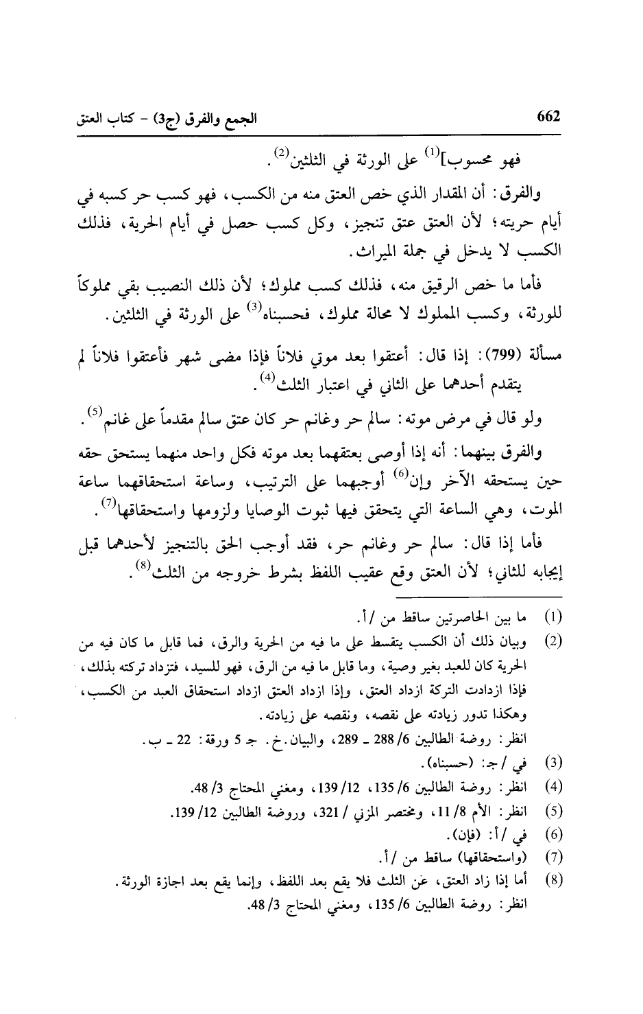 فأما ما خص الرقيق منه، فذلك كسب مملوك، لأن ذلك النصيب بقى مملوكاً للورثة، وكسب المملوك لا محالة مملوك، فحسبناه على الورثة في الثلثين.