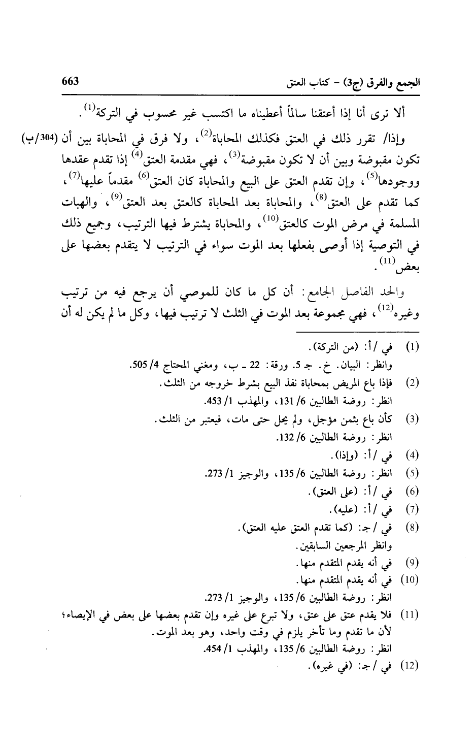 والحد الفاصل الجامع: أن كل ما كان للموصي أن يرجع فيه من ترتيب وغيره، فهي مجموعة بعد الموت في الثلث لا ترتيب فيها، وكل ما لم يكن له أن