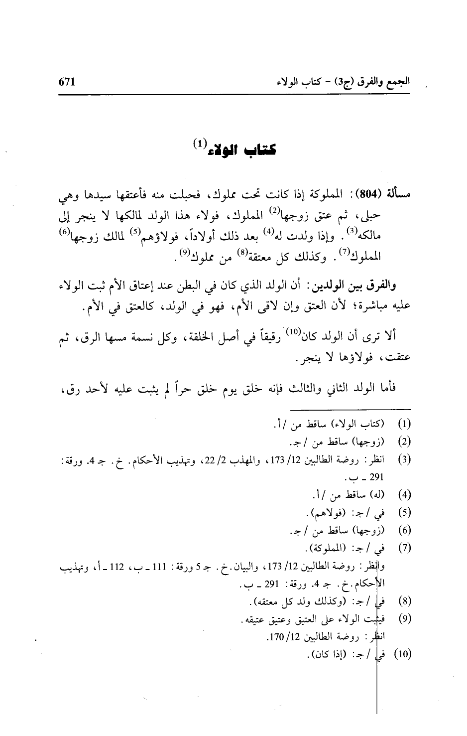 مسألة (٨٠٤): المملوكة إذا كانت تحت مملوك، فحبلت منه فأعتقها سيدها وهي حبلى، ثم عتق زوجها المملوك، فولاء هذا الولد لمالكه لا ينجر إلى مالكه. وإذا ولدت له بعد ذلك أولادا، فولاؤهم لمالك زوجها المملوك. وكذلك كل معتقة من مملوك.