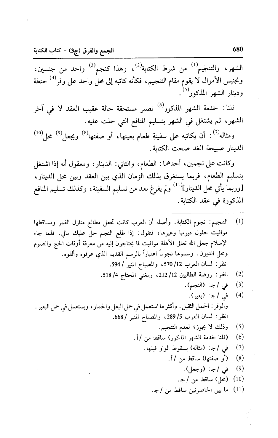 وكانت على نجمين، أحدهما: الطعام، والثاني: الدينار، ومعقول أنه إذا اشتغل بتسليم الطعام، فربما يستغرق بذلك الزمان الذي بين العقد وبين محل الدينار،] وربما يأتي محل الدينار [ولم يفرغ بعد من تسليم السفينة، وكذلك تسليم المنافع المذكورة في عقد الكتابة.