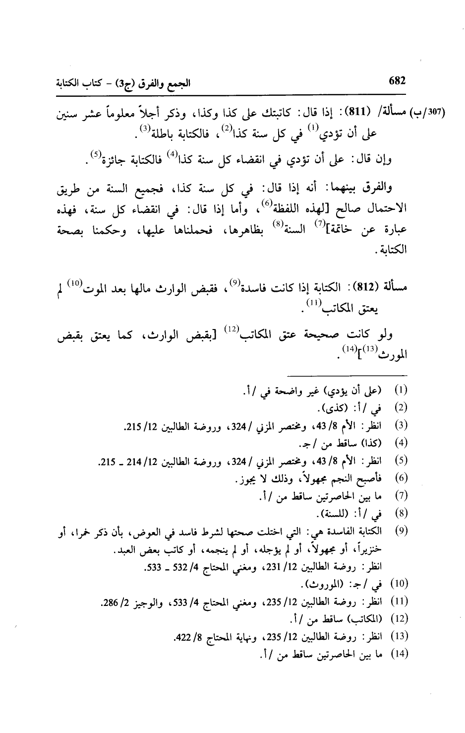 مسألة (٨١٢): الكتابة إذا كانت فاسدة، فقبض الوارث مالها بعد الموت لم يعتق المكاتب.