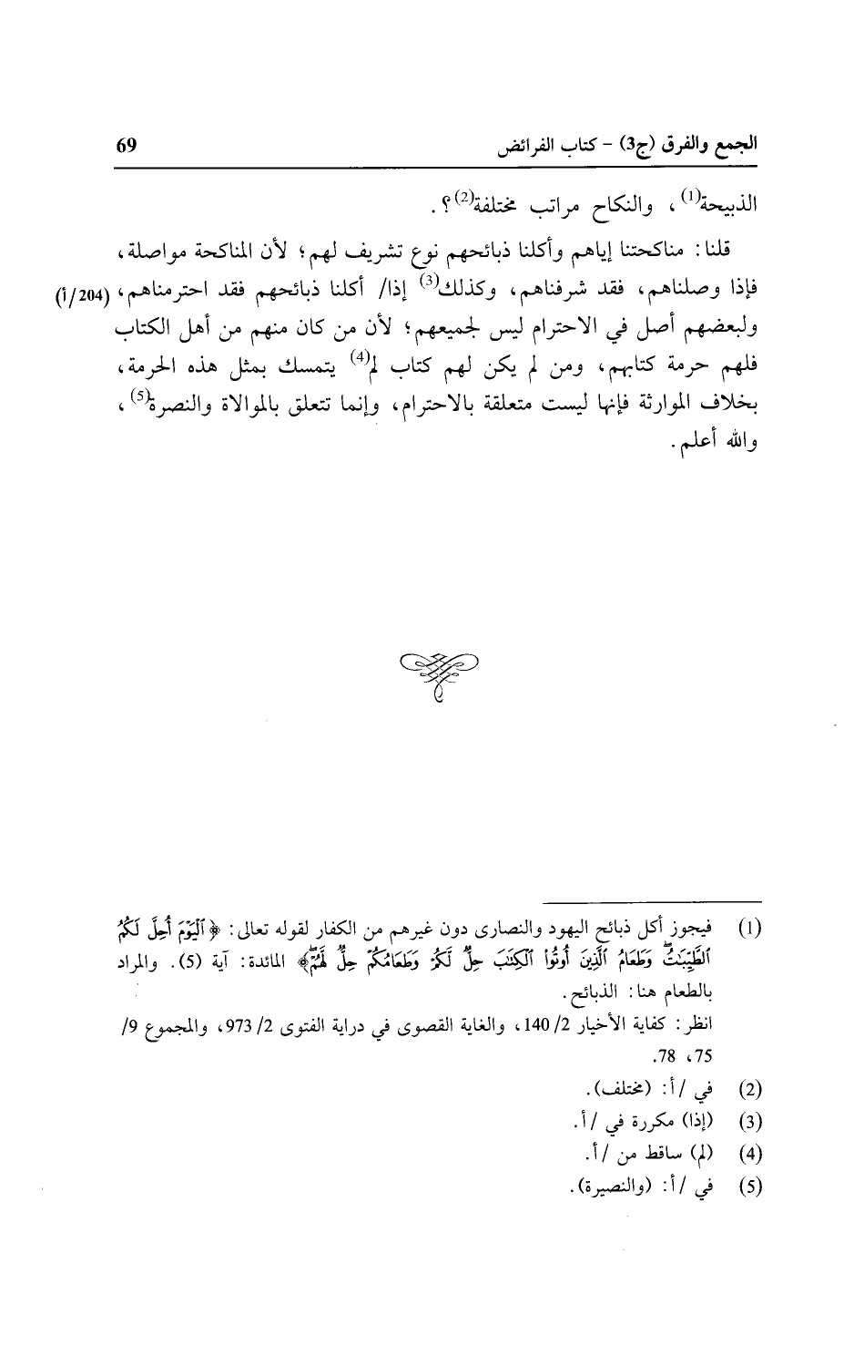 قلنا: مناكحتنا إياهم وأكلنا ذبائحهم نوع تشريف لهم؛ لأن المناكحة مواصلة, فإذا وصلناهم, فقد شرفناهم, وكذلك إذا/ (٢٠٤/ أ) أكلنا ذبائحهم فقد احترمناهم, ولبعضهم أصل في الاحترام ليس لجميعهم؛ لأن من كان منهم من أهل الكتاب فلهم حرمة كتابهم, ومن لم يكن لهم كتاب لم يتمسك بمثل هذه الحرمة, بخلاف الموارثة فإنها ليست متعلقة بالاحترام, وإنما تتعلق بالموالاة والنصرة, والله أعلم.
