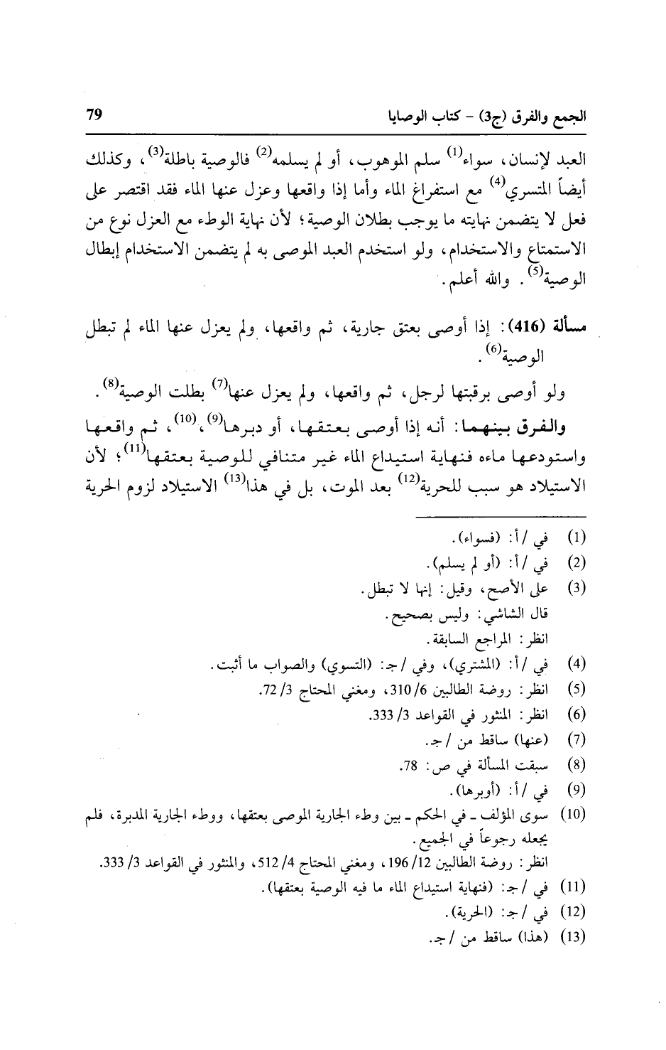 مسألة (٤١٦): إذا أوصى بعتق جارية, ثم واقعها, ولم يعزل عنها الماء لم تبطل الوصية.