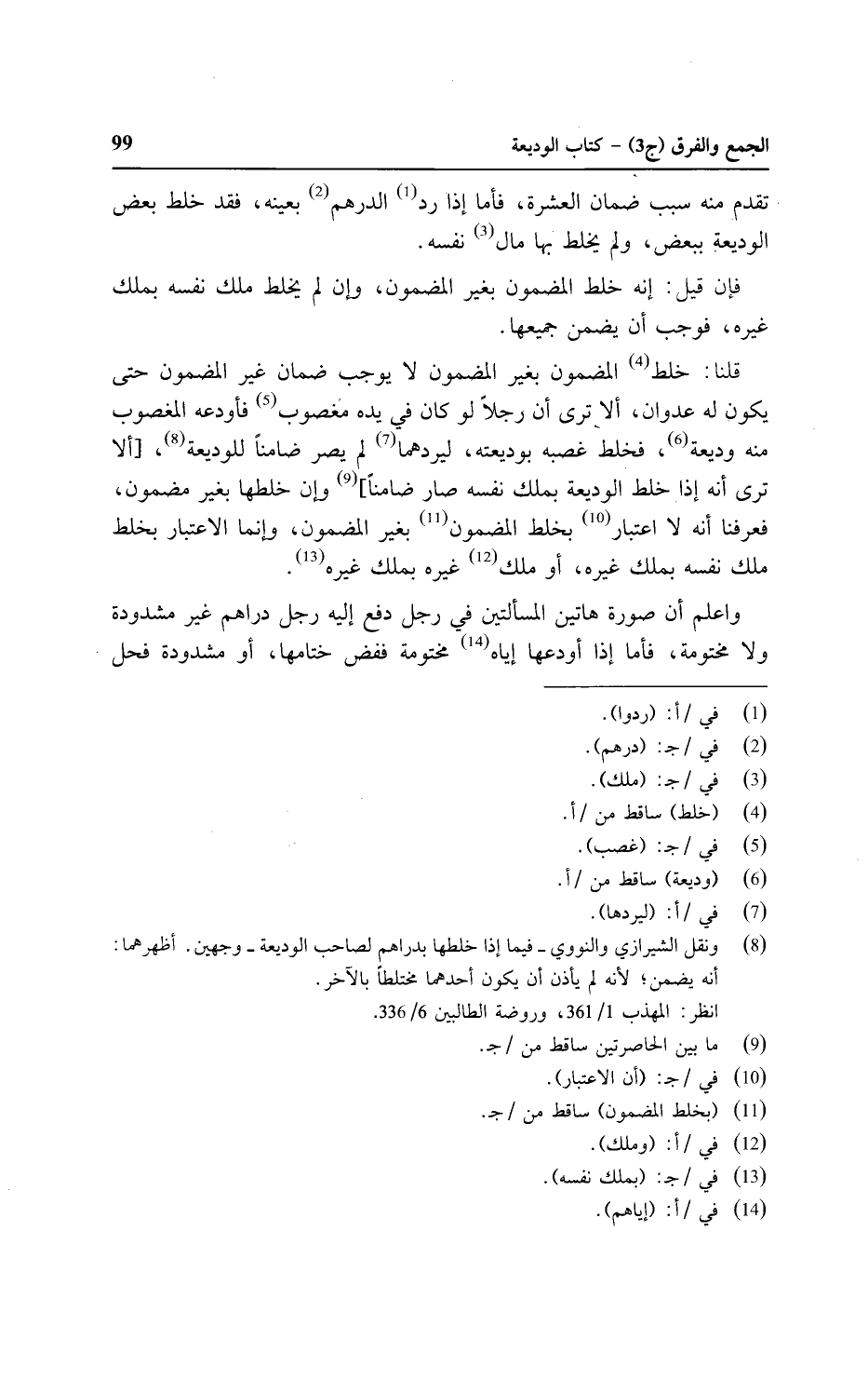 تقدم منه سبب ضمان العشرة، فأما إذا رد الدرهم بعينه، فقد خلط بعض الوديعة ببعض، ولم يخلط بها مال نفسه.