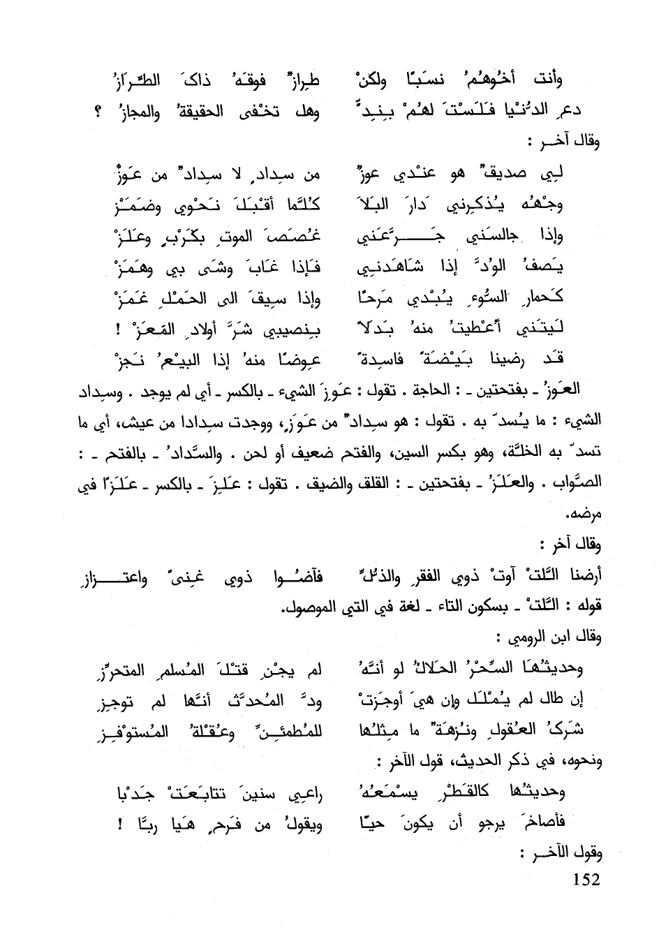 لي صديق هو عندي عوزٌ ... من سداد لا سداد من عوز