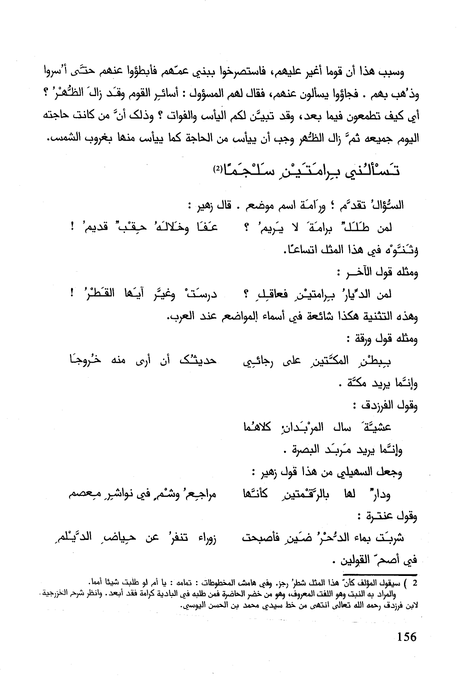 السؤال تقدم ورامة اسم موضع. قال زهير: