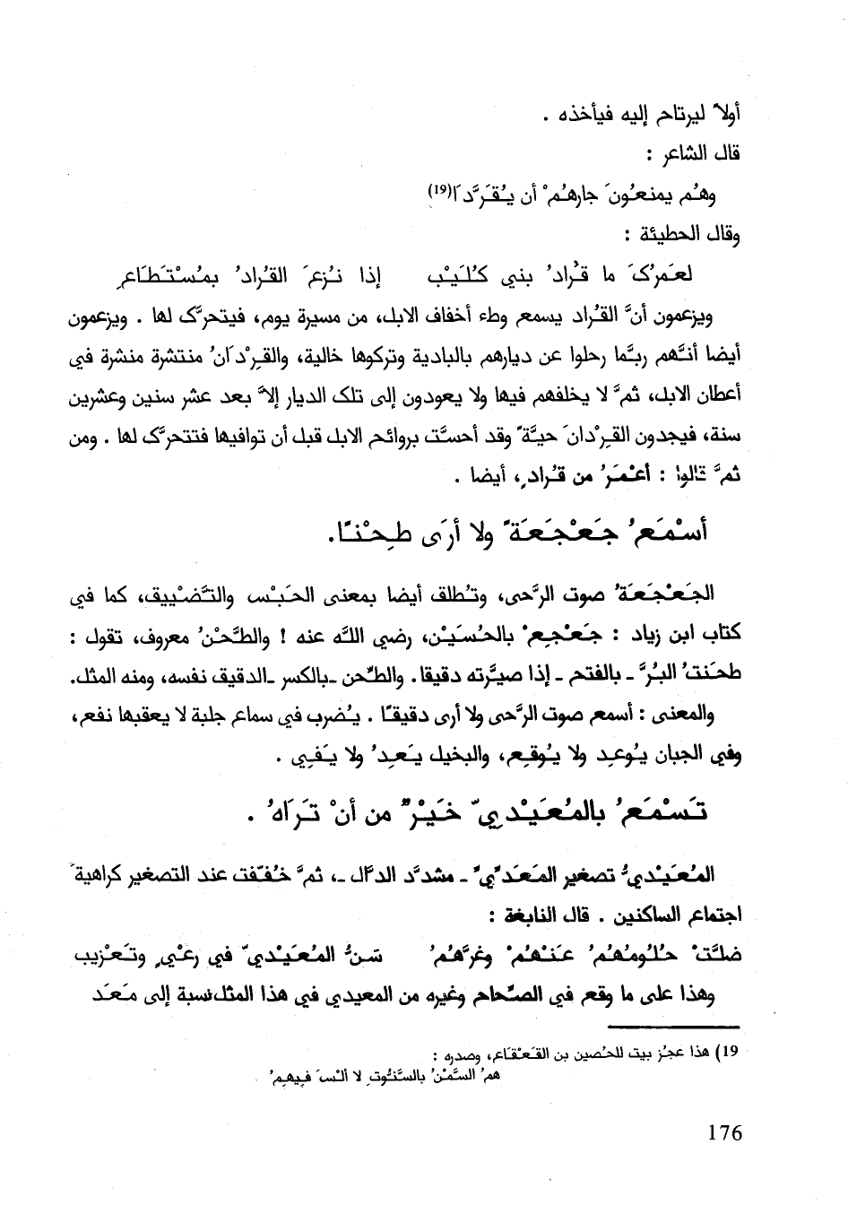 قال الشاعر: وهم يمنعون جارهم أنَّ يقردا وقال الحطيئة: