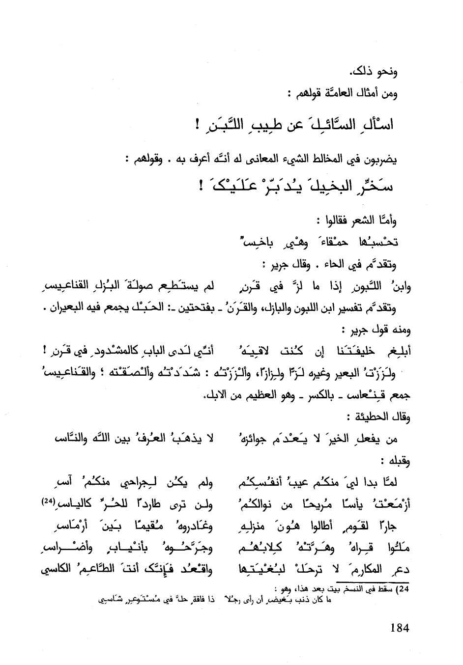 وتقدم تفسير أبن اللبون والبازل والقرن بفتحتين: الحبل يجمع فيه البعيران. ومنه قول جرير: