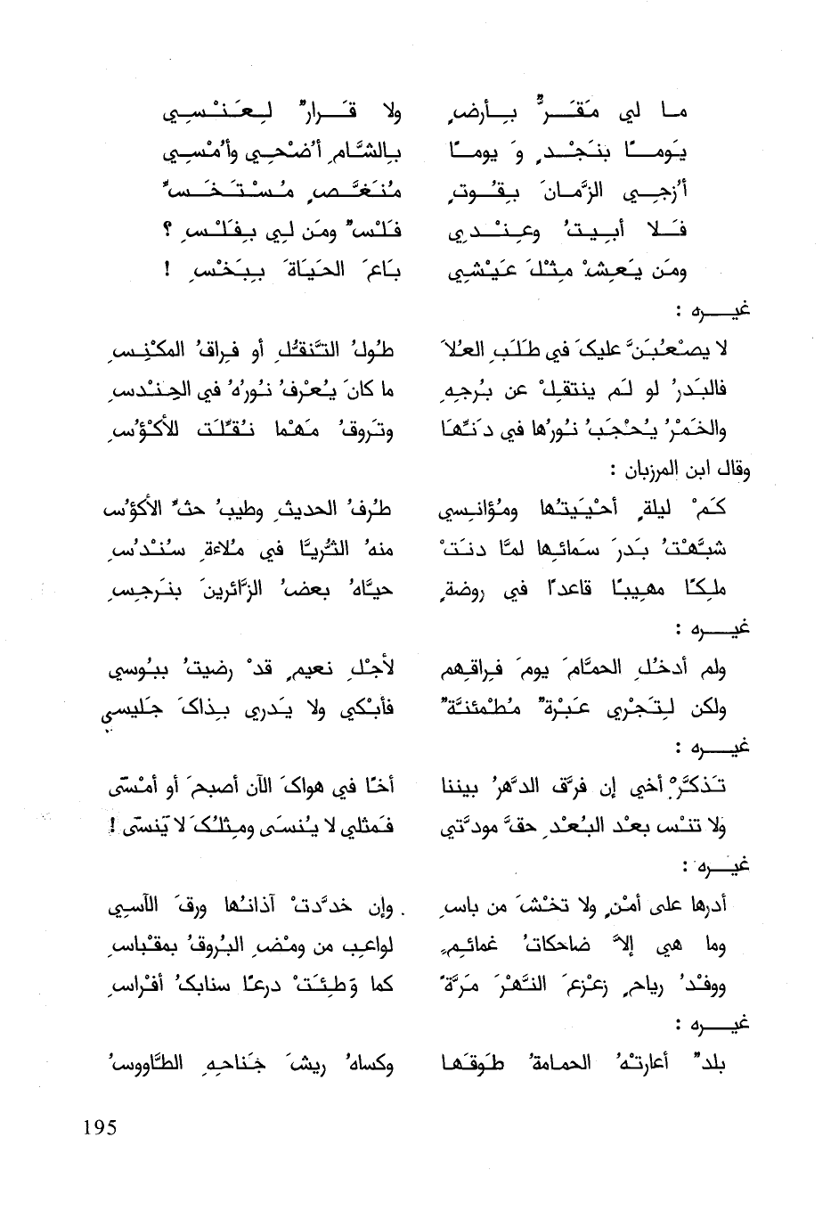 بلد أغارته الحمامة طوقها ... وكساه ريش جناحه الطاووس