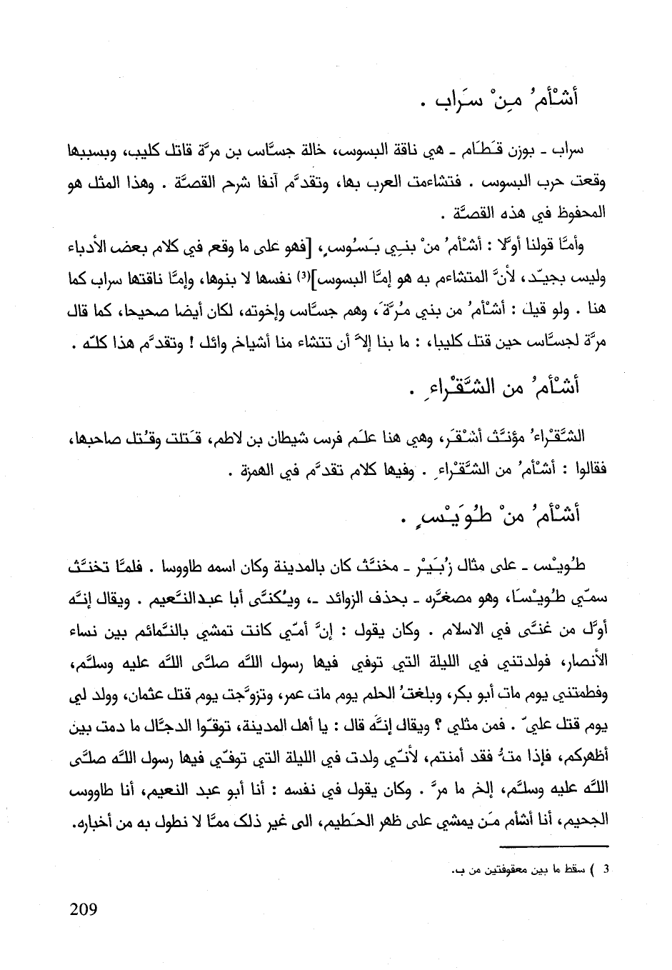 وأما قولنا أوّلاً: أشأم من بني بسوس فهو على ما وقع في كلام بعض الأدباء وليس بجيد لأن المتشاءم به هو إما البسوس نفسها لا بنوها وأما ناقتها سراب كما هنا. ولو قيل: أشأم من بني مرة وهم جساس وإخوته لكن أيضاً صحيحا كما قال مرة لجساس حين قتل كليبا: ما بنا إلاّ أن تتشاءم منا أشياخ وائل! وقدم هذا كله.