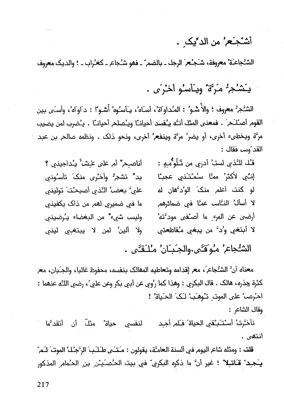 الشجاعة معروفة، شجع الرجل بالضم فهو شجاع كغراب والديك معروف