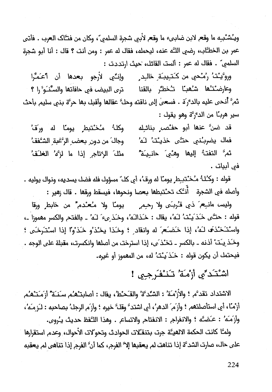 ثم أنحى عليه بالدرة. فسعى إلى ناقة وحل عقالها وأقبل بها حرة بني سليم باحث سير هربا من الدرة وهو يقول: