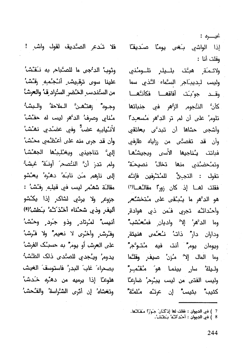 وداران دارٌ ذات نعمى هنيئةٍ ... وفرشٍ وأخرى لا نعيمٌ ولا فرشُ