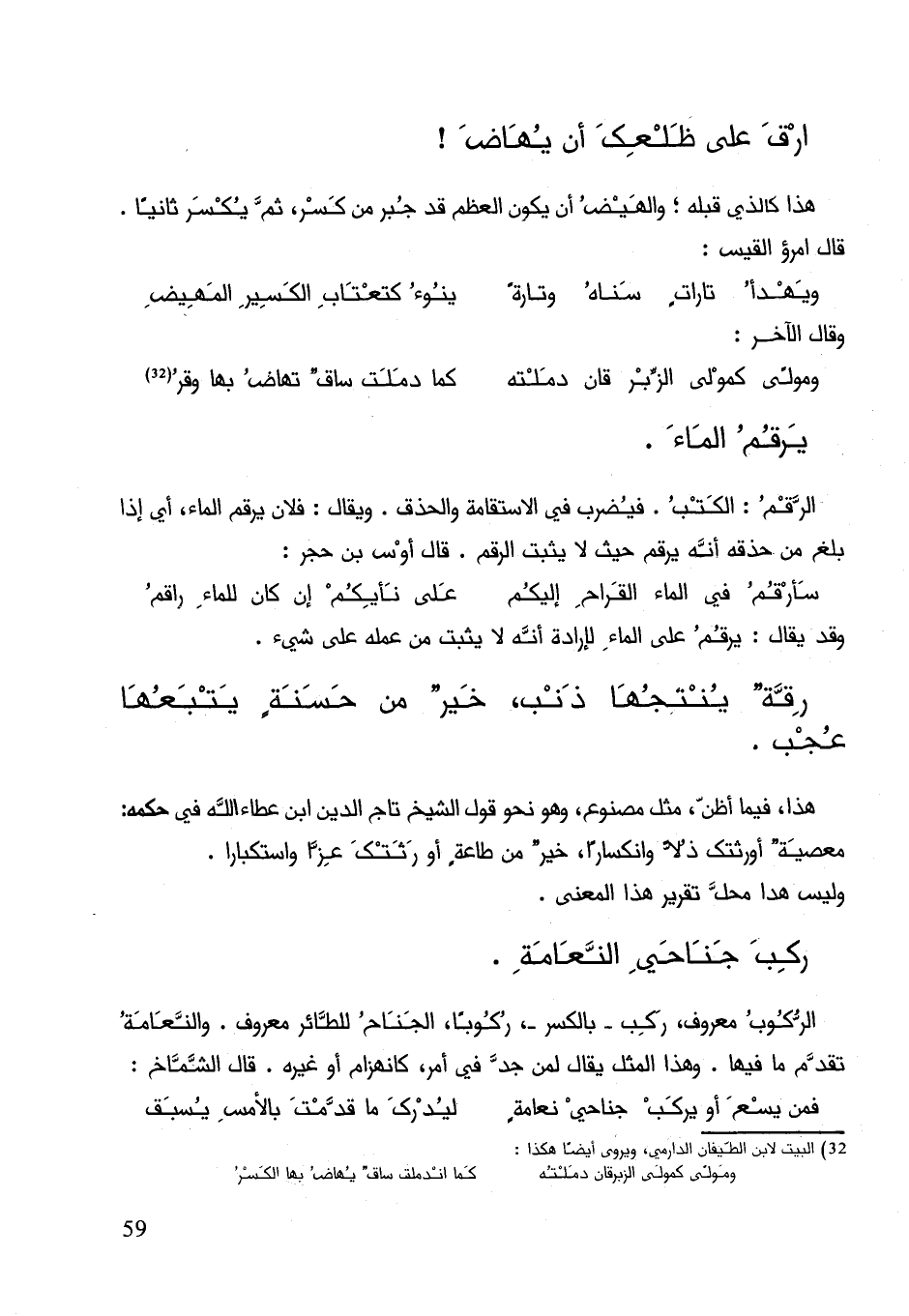 ويهدأ تاراتٍ سناه وتارةً ... ينوء كعتاب الكسير المهيضِ