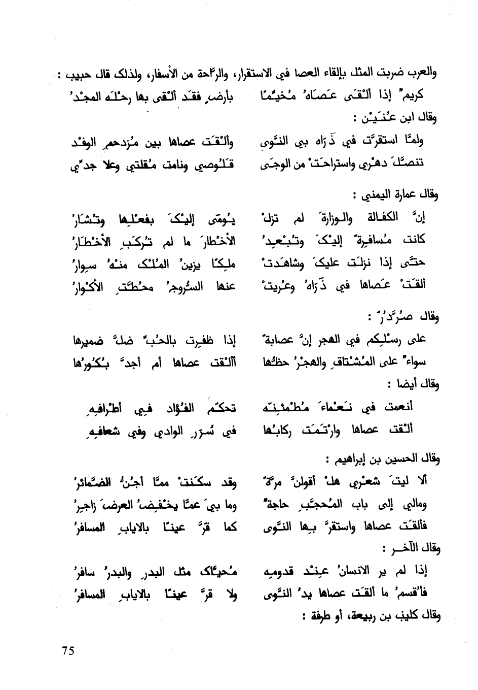 والعرب ضربت المثل بإلقاء العصى في الاستقرار والراحة من الأسفار ولذلك قال حبيب: