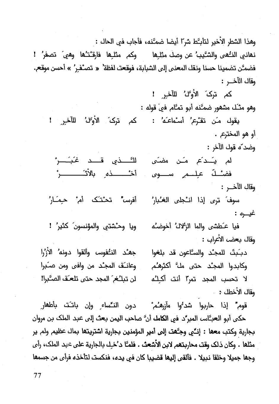 وهذا الشطر الأخير لتأبط شرا أيضاً ضمنه فأجاب في الحال: