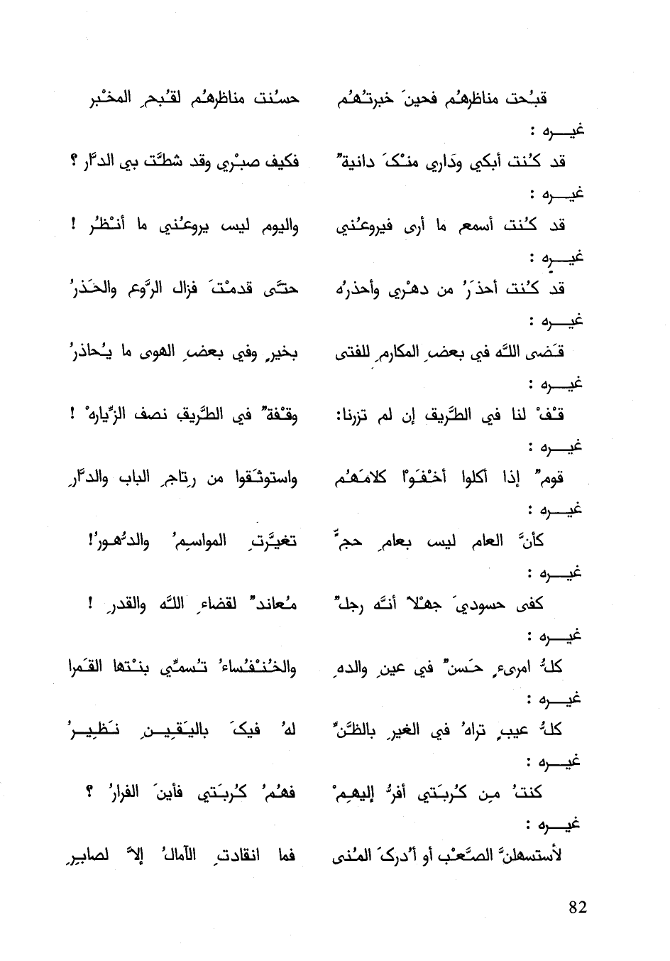 قبحت مناظرهم فحين خبرتهم ... حسنت مناظرهم لقبح المخبرِ