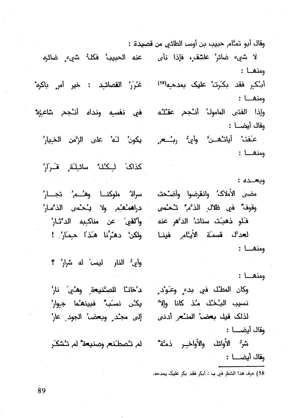 وقال أبو تمام حبيب بن أوس الطائي من قصيدة: