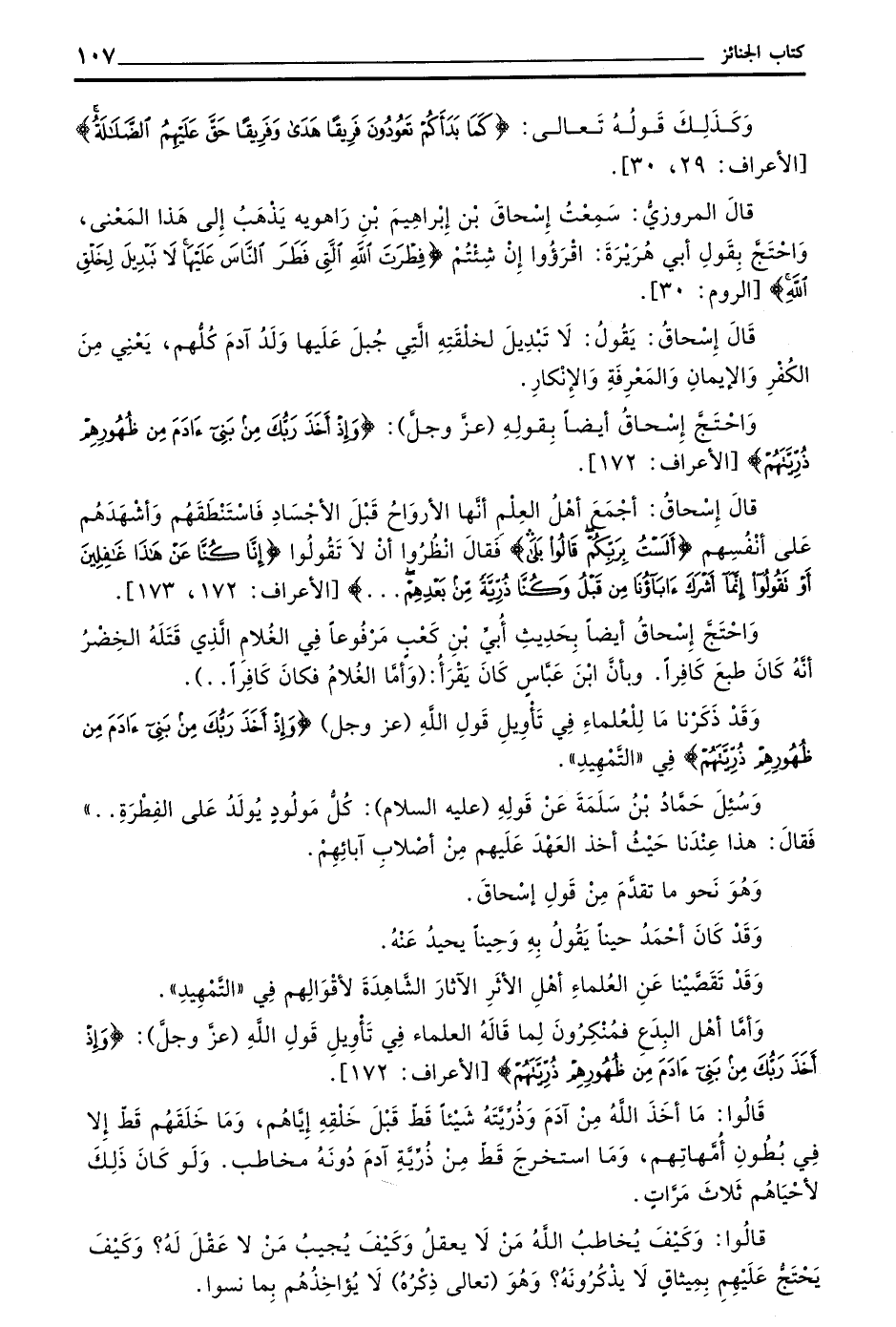 وَاحْتَجَّ إِسْحَاقُ أَيْضًا بِقَوْلِهِ (عَزَّ وَجَلَّ) (وَإِذْ أَخَذَ رَبُّكَ مِنْ بَنِي آدَمَ مِنْ ظُهُورِهِمْ ذُرِّيَّتَهُمْ) الْأَعْرَافِ 172