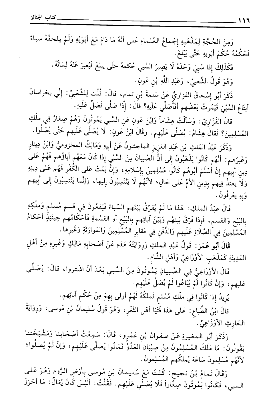 قال الفزاري وسألت هشاما وبن عَوْنٍ عَنِ السَّبْيِ يَمُوتُونَ وَهُمْ صِغَارٌ فِي مِلْكِ الْمُسْلِمِينَ فَقَالَ هِشَامٌ يُصَلَّى عَلَيْهِمْ وَقَالَ بن عَوْنٍ لَا يُصَلَّى عَلَيْهِمْ حَتَّى يُصَلُّوا