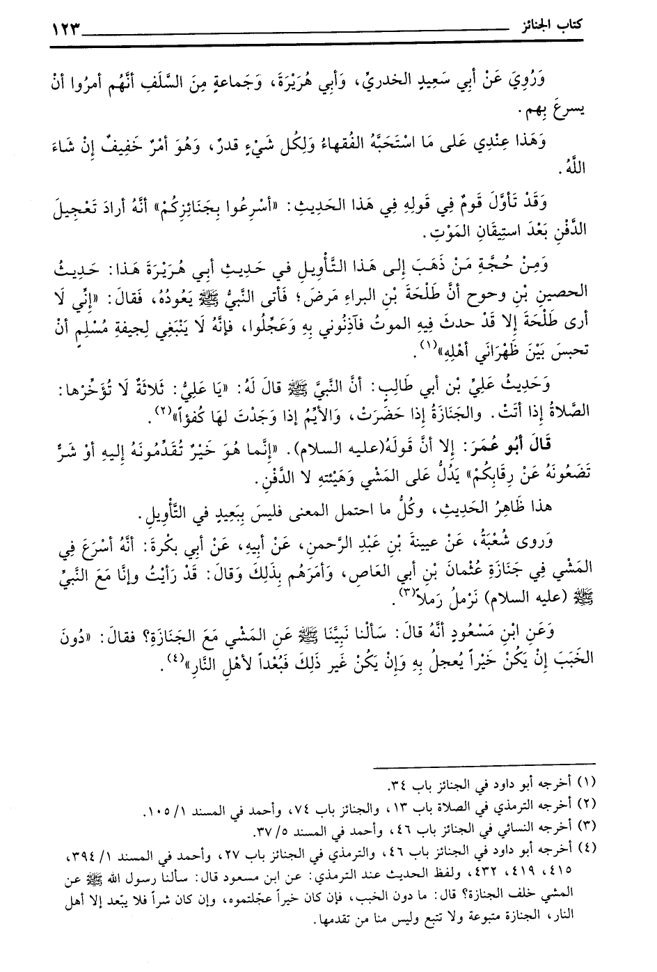 قَالَ أَبُو عُمَرَ إِلَّا أَنَّ قَوْلَهُ (عَلَيْهِ السَّلَامُ) إِنَّمَا هُوَ خَيْرٌ تُقَدِّمُونَهُ إِلَيْهِ أَوْ شَرٌّ تَضَعُونَهُ عَنْ رِقَابِكُمْ يَدُلُّ عَلَى الْمَشْيِ وَهَيْئَتِهِ لَا الدَّفْنِ