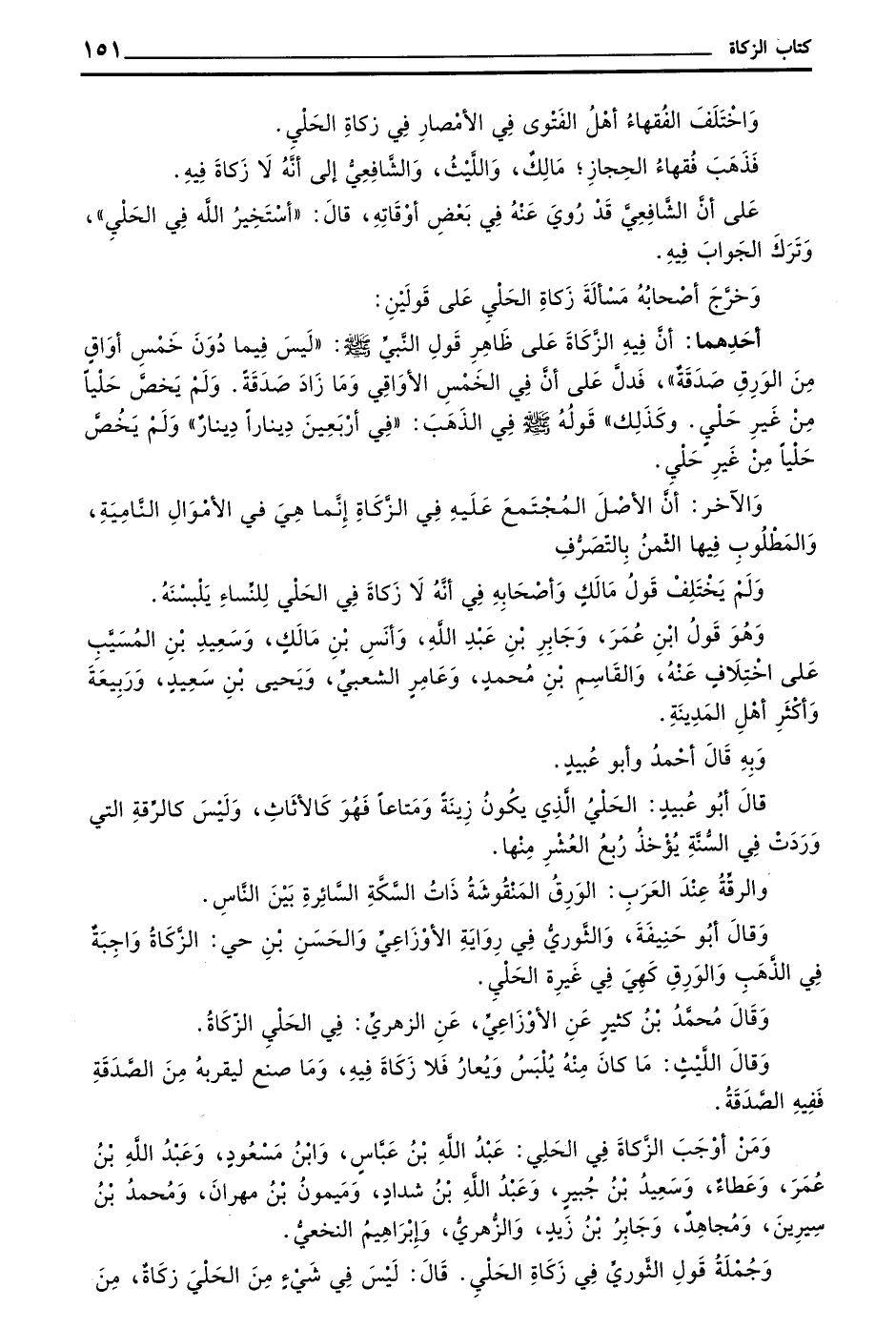 وَمَنْ أَوْجَبَ الزَّكَاةَ فِي الْحَلْيِ عَبْدُ الله بن عباس وبن مَسْعُودٍ وَعَبْدُ اللَّهِ بْنُ عُمَرَ وَعَطَاءٌ وَسَعِيدُ بْنُ جُبَيْرٍ وَعَبْدُ اللَّهِ بْنُ شَدَّادٍ وَمَيْمُونُ بْنُ مِهْرَانَ وَمُحَمَّدُ بْنُ سِيرِينَ وَمُجَاهِدٌ وَجَابِرُ بْنُ زَيْدٍ وَالزُّهْرِيُّ وَإِبْرَاهِيمُ النَّخَعِيُّ