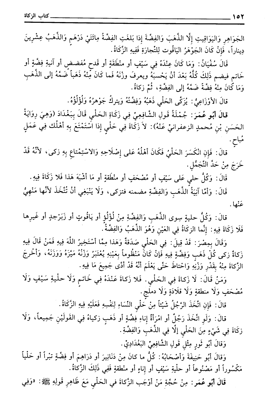 قَالَ أَبُو عُمَرَ جُمْلَةُ قَوْلِ الشَّافِعِيِّ فِي زَكَاةِ الْحَلْيِ قَالَ بِبَغْدَادَ (وَهِيَ رِوَايَةُ الْحَسَنِ بْنِ مُحَمَّدٍ الزَّعْفَرَانِيِّ عَنْهُ) لَا زَكَاةَ فِي حَلْيٍ إِذَا اسْتَمْتَعَ بِهِ أَهْلُكَ فِي عَمَلٍ مُبَاحٍ