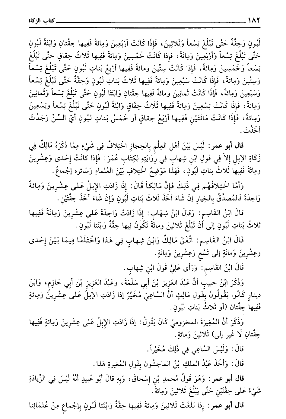 قَالَ أَبُو عُمَرَ لَيْسَ بَيْنَ أَهْلِ الْعِلْمِ بِالْحِجَازِ اخْتِلَافٌ فِي شَيْءٍ مِمَّا ذَكَرَهُ مَالِكٌ فِي زَكَاةِ الْإِبِلِ إِلَّا فِي قَوْلِ بن شِهَابٍ فِي رِوَايَتِهِ لِكِتَابِ عُمَرَ فَإِذَا كَانَتْ إحدى وعشرين ومائة ففيها ثلاث بنات لبون فَهَذَا مَوْضِعُ اخْتِلَافٍ بَيْنَ الْعُلَمَاءِ وَسَائِرُهُ إِجْمَاعٌ