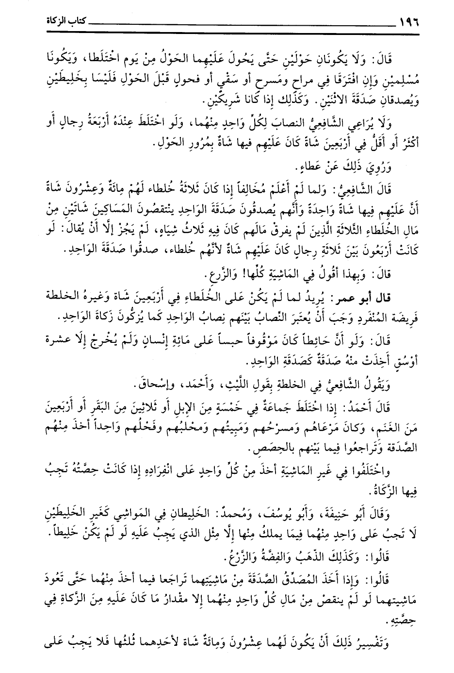 وَيَقُولُ الشَّافِعِيُّ فِي الْخُلْطَةِ بِقَوْلِ اللَّيْثِ وَأَحْمَدَ وَإِسْحَاقَ