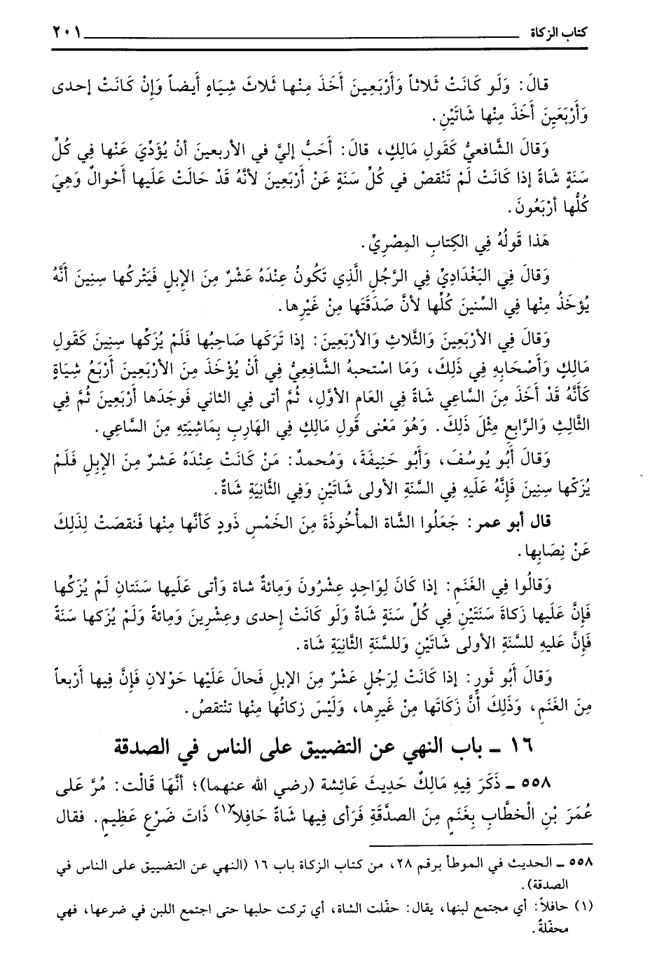 558 - ذَكَرَ فِيهِ مَالِكٌ حَدِيثَ عَائِشَةَ (رَضِيَ اللَّهُ عَنْهُمَا) أَنَّهَا قَالَتْ مُرَّ عَلَى عُمَرَ بْنِ الْخَطَّابِ بِغَنَمٍ مِنَ الصَّدَقَةِ فَرَأَى فِيهَا شَاةً حَافِلًا ذَاتَ ضَرْعٍ عظيم فقال