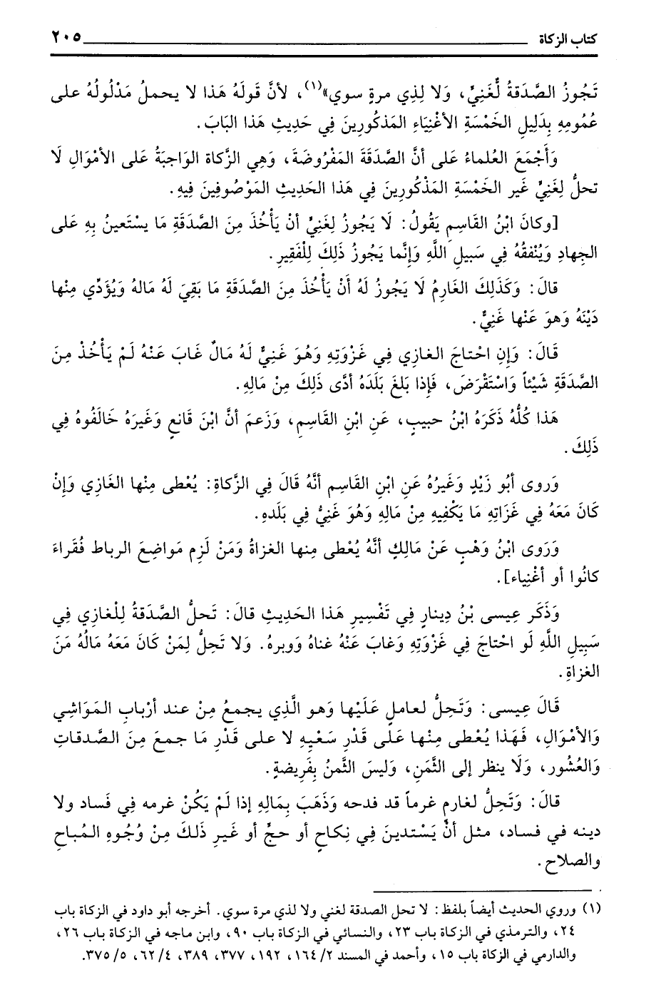 وَأَجْمَعَ الْعُلَمَاءُ عَلَى أَنَّ الصَّدَقَةَ الْمَفْرُوضَةَ وَهِيَ الزَّكَاةُ الْوَاجِبَةُ عَلَى الْأَمْوَالِ لَا تَحِلُّ لِغَنِيٍّ غَيْرَ الْخَمْسَةِ الْمَذْكُورِينَ فِي هَذَا الحديث الموصوفين فيه