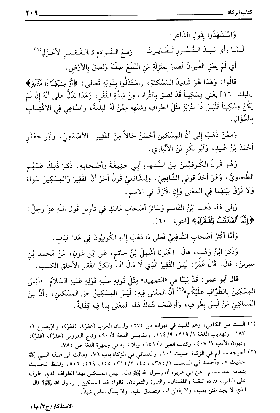 وَإِلَى هَذَا ذَهَبَ بن الْقَاسِمِ وَسَائِرُ أَصْحَابِ مَالِكٍ فِي تَأْوِيلِ قَوْلِ اللَّهِ عَزَّ وَجَلَّ (إِنَّمَا الصَّدَقَاتُ لِلْفُقَرَاءِ) التَّوْبَةِ 60