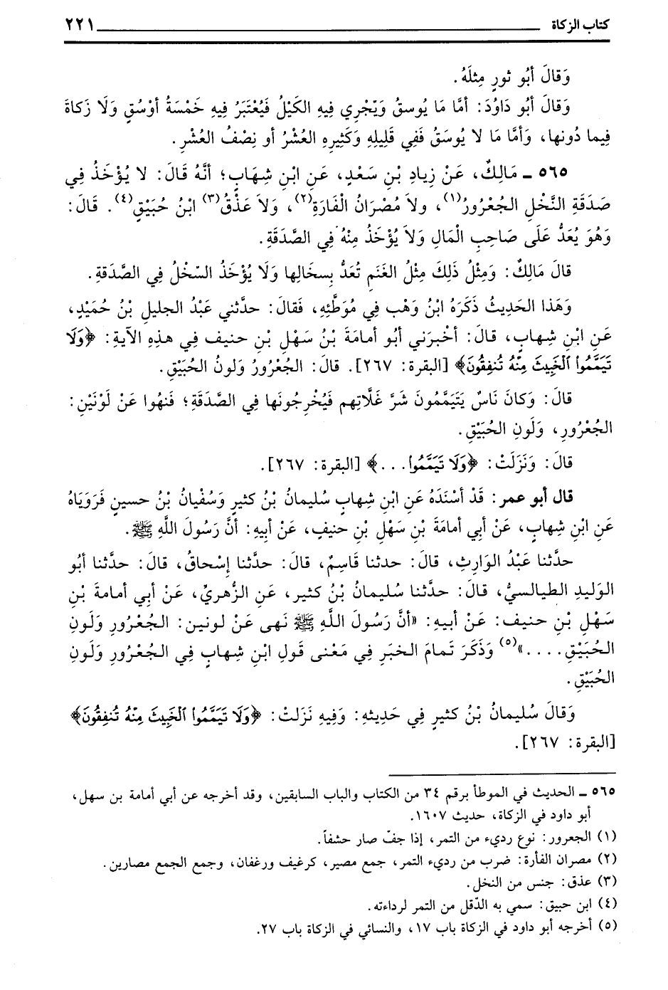 565 - مَالِكٌ عَنْ زِيَادِ بن سعد عن بن شِهَابٍ أَنَّهُ قَالَ لَا يُؤْخَذُ فِي صَدَقَةِ النَّخْلِ الْجُعْرُورُ وَلَا مُصْرَانُ الْفَارَةِ وَلَا عَذْقُ بن حُبَيْقٍ قَالَ وَهُوَ يُعَدُّ عَلَى صَاحِبِ الْمَالِ وَلَا يُؤْخَذُ مِنْهُ فِي الصَّدَقَةِ