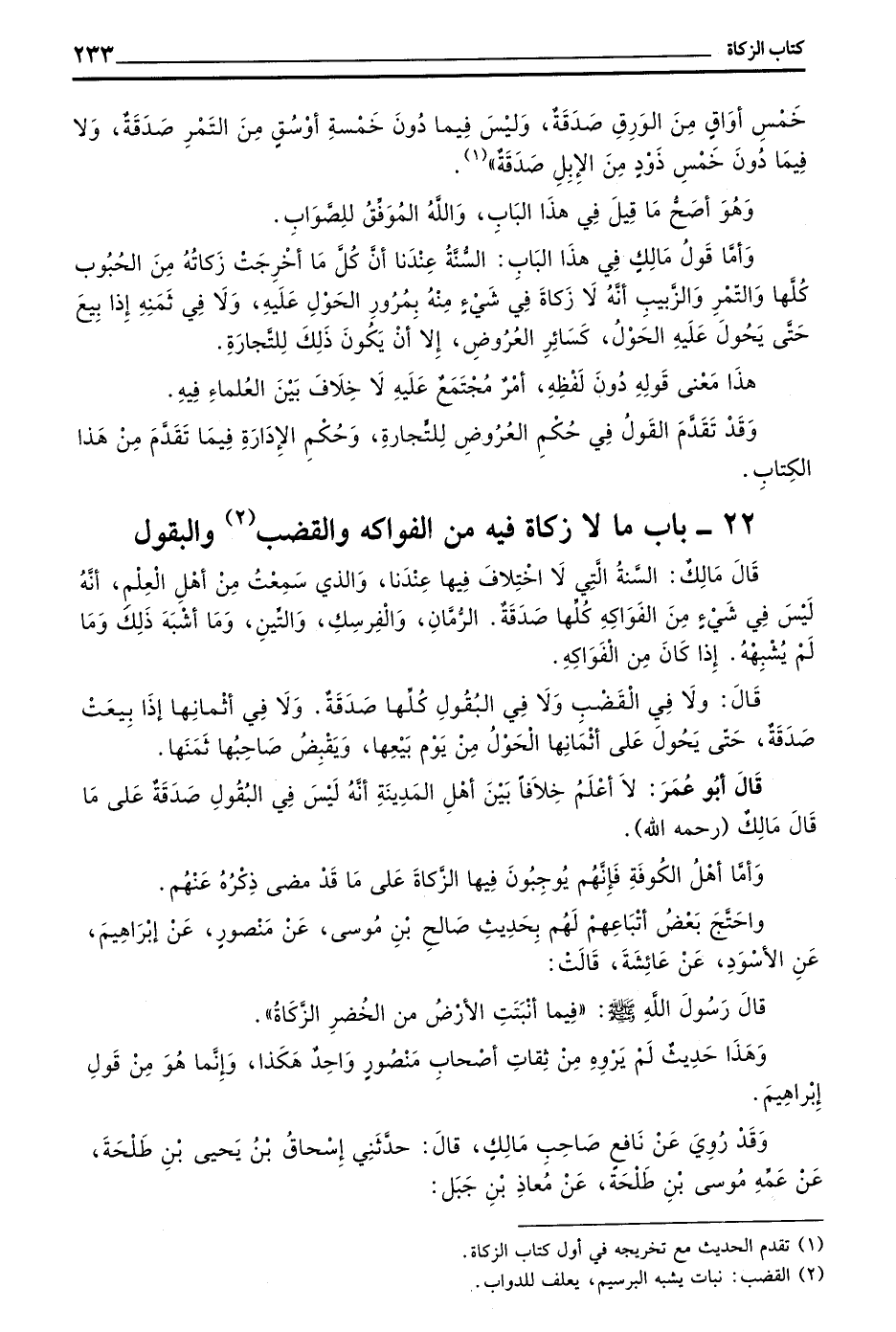 (22 - بَابُ مَا لَا زَكَاةَ فِيهِ مِنَ الْفَوَاكِهِ وَالْقَضْبِ وَالْبُقُولِ)