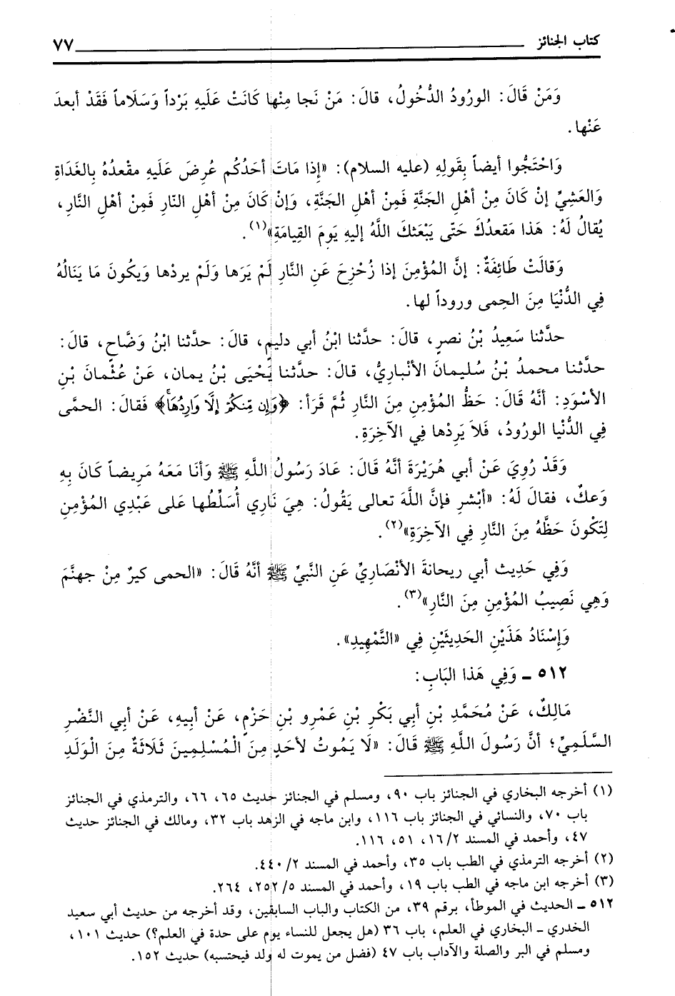 مَالِكٌ عَنْ مُحَمَّدِ بْنِ أَبِي بَكْرِ بْنِ عَمْرِو بْنِ حَزْمٍ عَنْ أَبِيهِ عَنْ أَبِي النَّضْرِ السُّلَمِيِّ أَنَّ رَسُولَ اللَّهِ صَلَّى اللَّهُ عَلَيْهِ وَسَلَّمَ قَالَ لَا يَمُوتُ لِأَحَدٍ مِنَ الْمُسْلِمِينَ ثَلَاثَةٌ مِنَ الْوَلَدِ