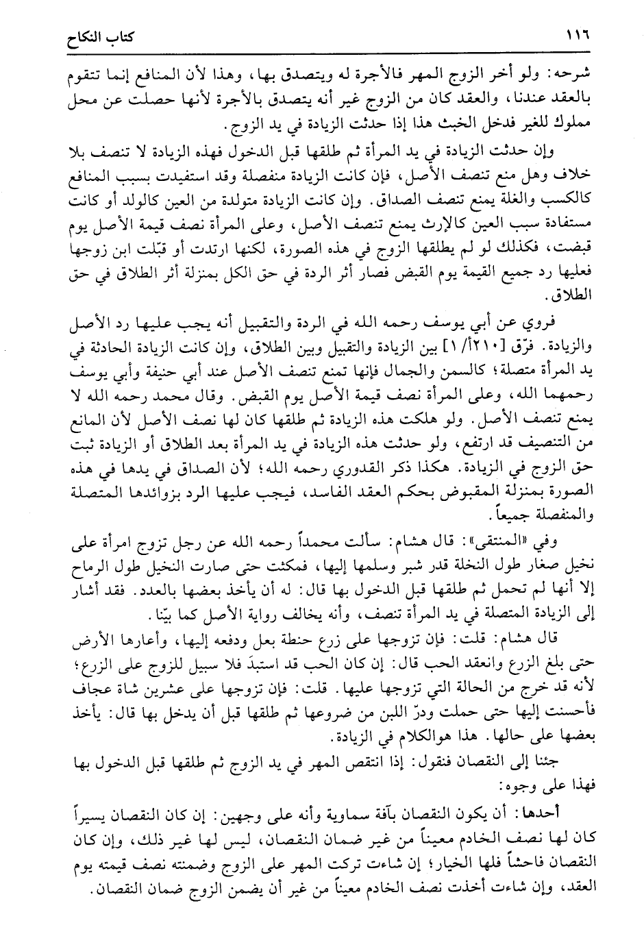 فقد أشار إلى الزيادة المتصلة في يد المرأة تنصف، وأنه يخالف رواية الأصل كما بيّنا.