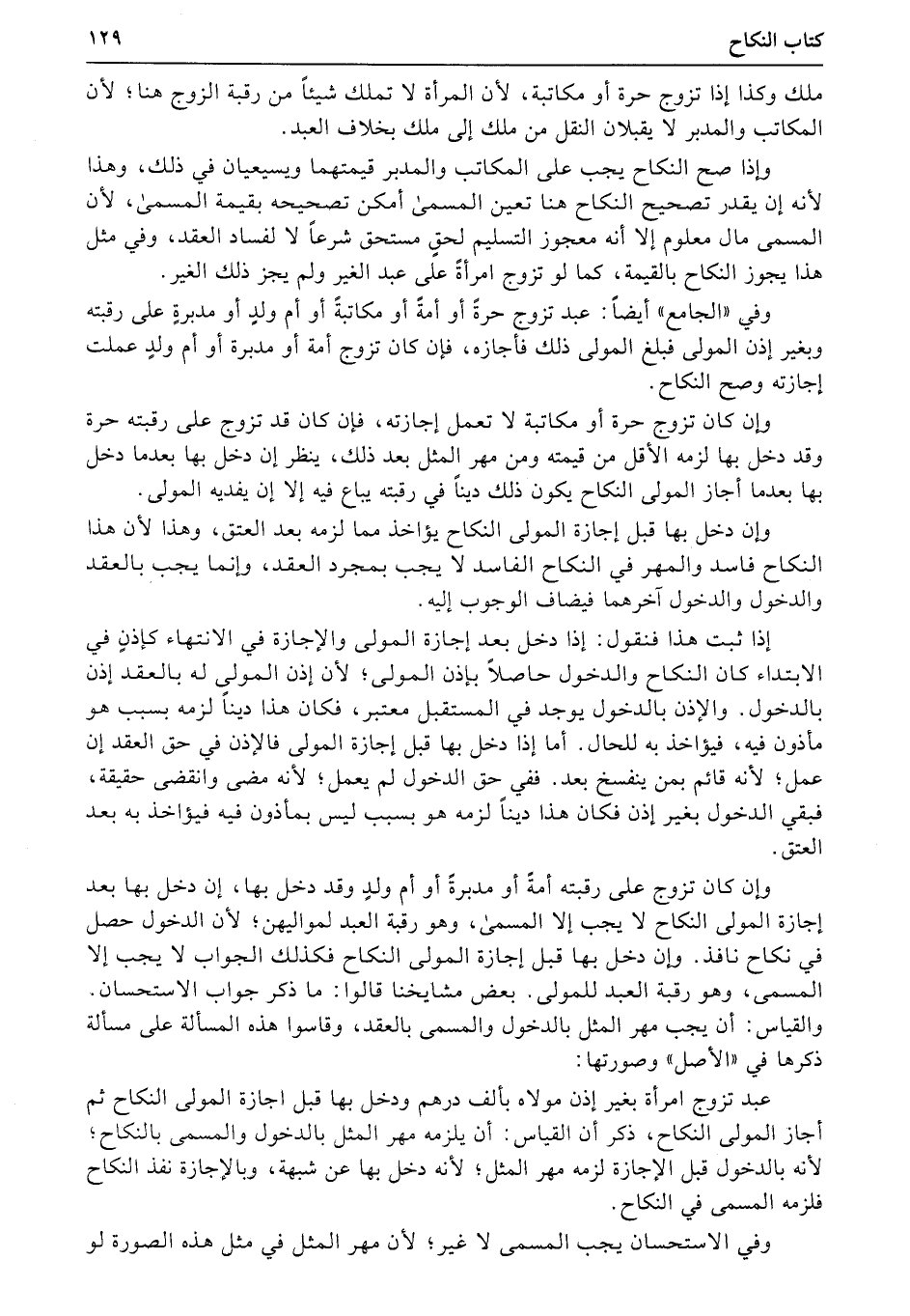 وإذا صح النكاح يجب على المكاتب والمدبر قيمتهما ويسيعيان في ذلك، وهذا لأنه إن يقدر تصحيح النكاح هنا تعين المسمى أمكن تصحيحه بقيمة المسمى، لأن المسمى مال معلوم إلا أنه معجوز التسليم لحقٍ مستحق شرعاً لا لفساد العقد، وفي مثل هذا يجوز النكاح بالقيمة، كما لو تزوج امرأةً على عبد الغير ولم يجز ذلك الغير.