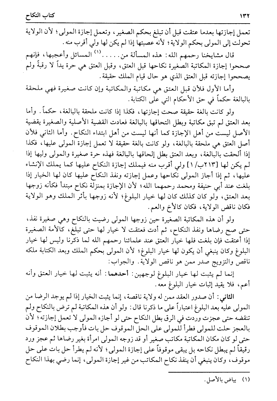قال مشايخنا رحمهم الله: هذه المسألة من..... المسائل وأعجبها، فإنهم صححوا إجازة المكاتبة الصغيرة نكاحها قبل العتق، وقبل العتق هي حرة يداً لا رقبةً ولم يصححوا إجازته قبل العتق الذي هو حال قيام الملك حقيقة.