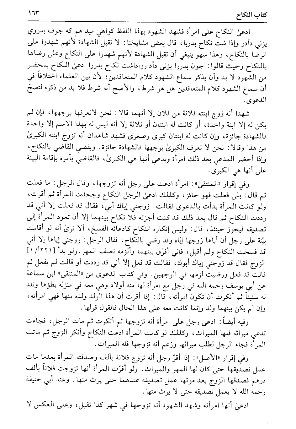 وفيه أيضاً: ادعى رجل على امرأة أنه تزوجها ثم أنكرت ثم مات الرجل، فجاءت تدعي ميراثه فلها الميراث، وكذلك لو كانت المرأة ادعت النكاح وأنكر الزوج ثم ماتت المرأة فجاء الرجل لطلب ميراثها وزعم أنه تزوجها فله الميراث.
