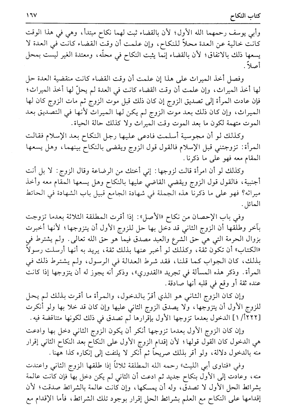 وفي «فتاوى أبي الليث» رحمه الله المطلقة ثلاثاً إذا طلقها الزوج الثاني واعتدت منه، وعادت إلى الأول بنكاح جديد ثم ادعت أن الثاني لم يكن دخل بها فإن كانت عالمة بشرائط الحل الأول لا تصدق، وله أن يمسكها، وإن كانت عالمة بالشرائط صدقت؛ لأن إقدامها على النكاح مع العلم بشرائط الحل إقرار بوجود تلك الشرائط، فأما الإقدام مع