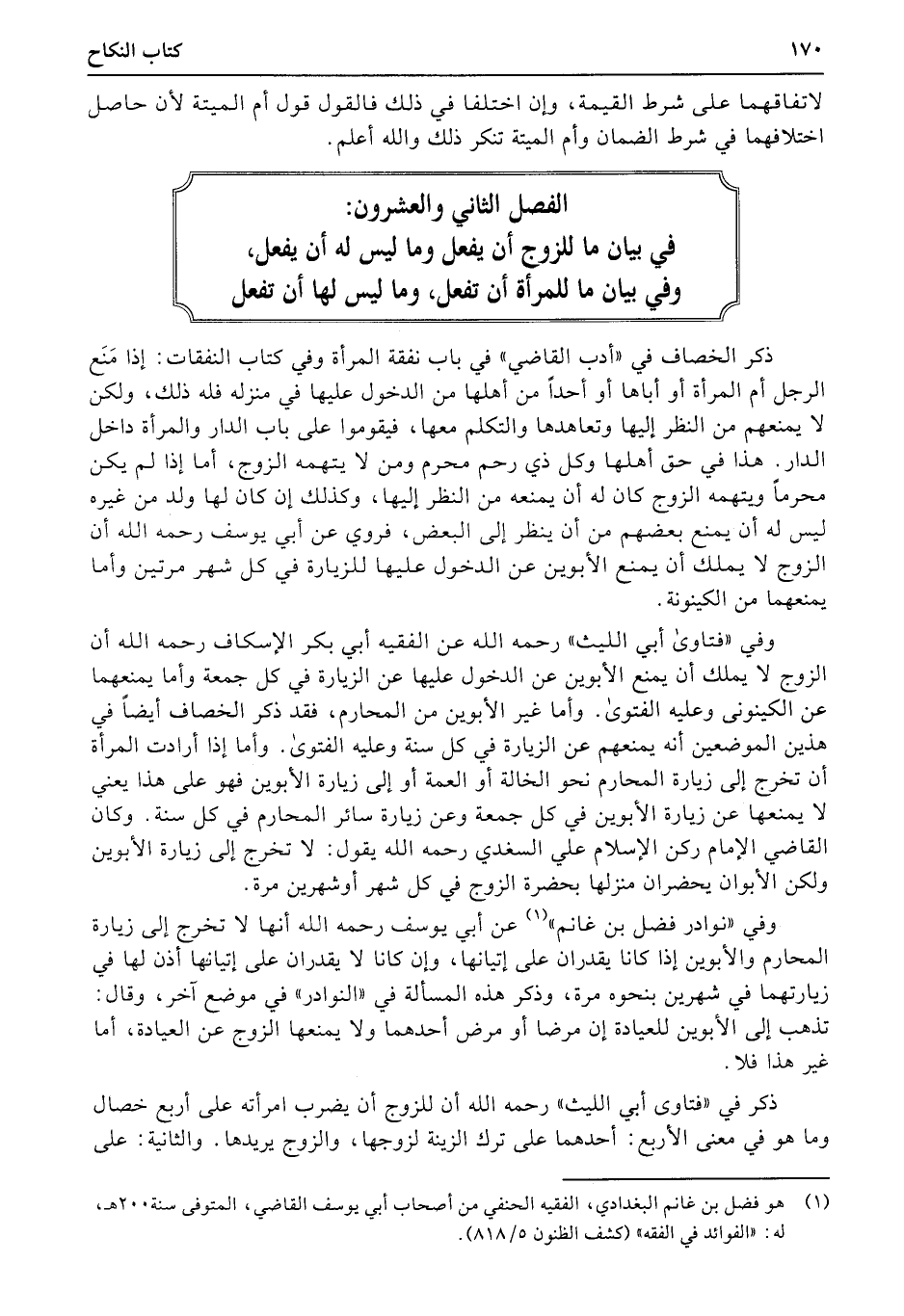 الفصل الثاني والعشرون: في بيان ما للزوج أن يفعل: وما ليس له أن يفعل، وفي بيان ما للمرأة أن تفعل، وما ليس لها أن تفعل