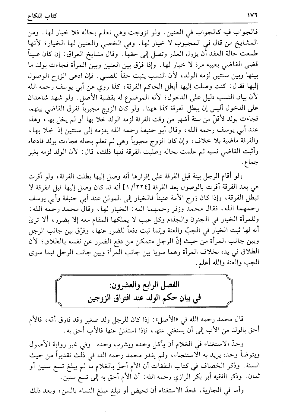 الفصل الرابع والعشرون: في بيان حكم الولد عند افتراق الزوجين