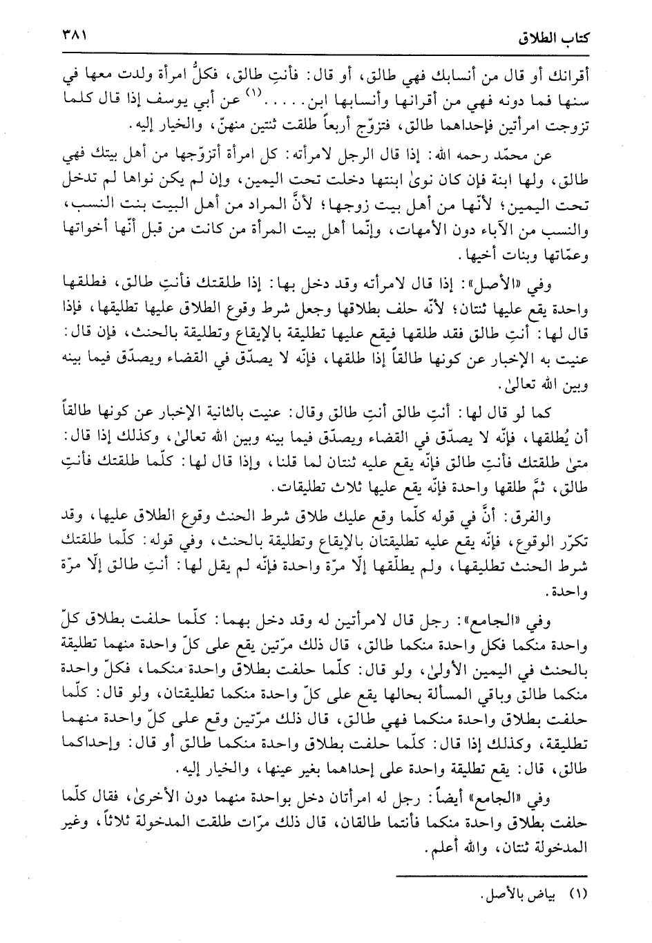 أقرانك أو قال من أنسابك فهي طالق، أو قال: فأنتِ طالق، فكلُّ امرأة ولدت معها في سنها فما دونه فهي من أقرانها وأنسابها ابن..... عن أبي يوسف إذا قال كلما تزوجت امرأتين فإحداهما طالق، فتزوّج أربعاً طلقت ثنتين منهنّ، والخيار إليه.